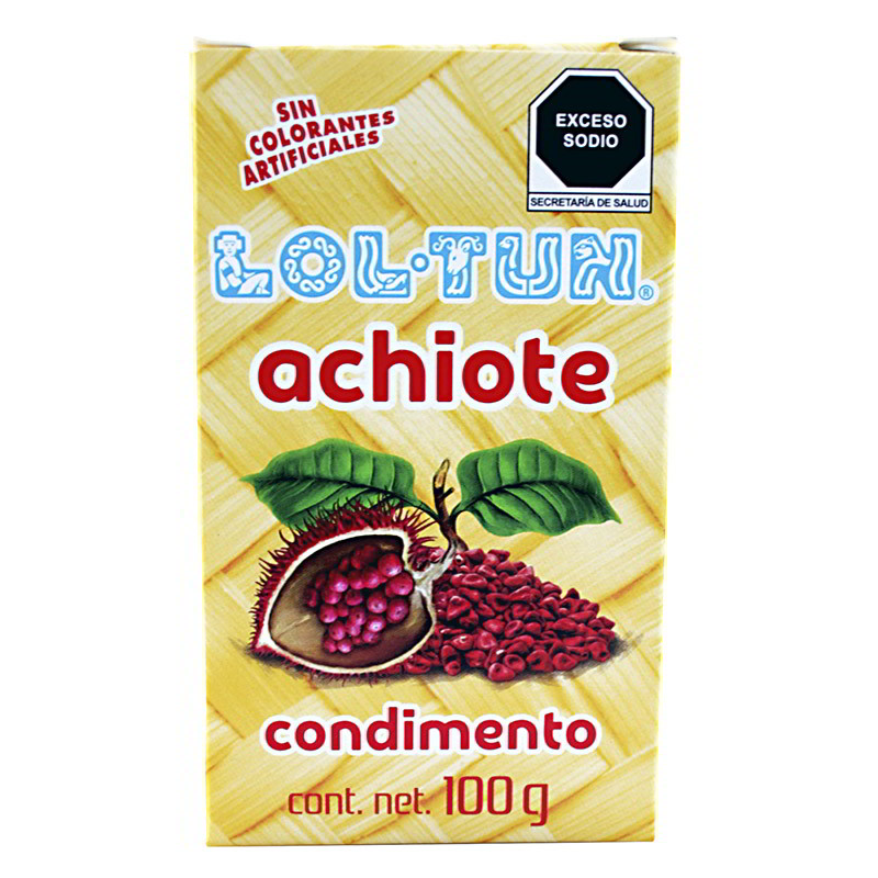 Ingredientes: achiote, especias, sal yodatada, vinagre, ácido cítrico y 0.1% de sorbato de potasio como conservante